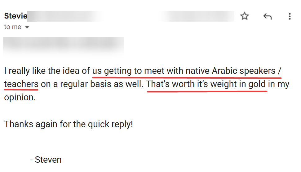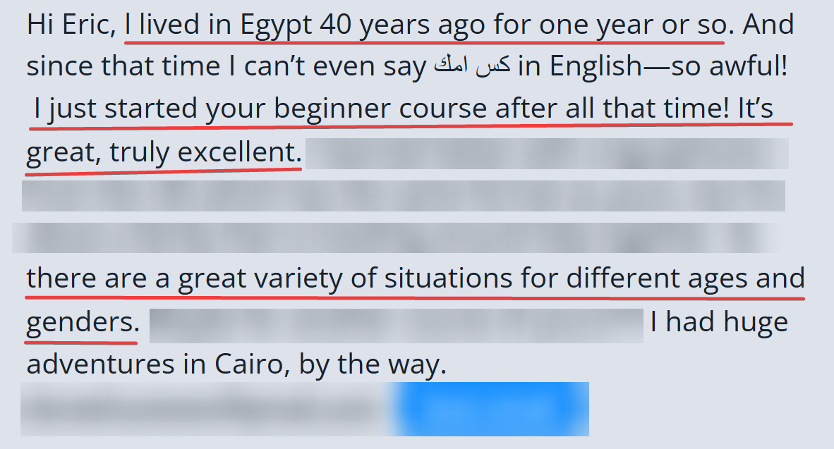 Our structured Egyptian Arabic courses give you everything you need to go from “absolute zero” to a confident (and competent) speaker of the dialect.